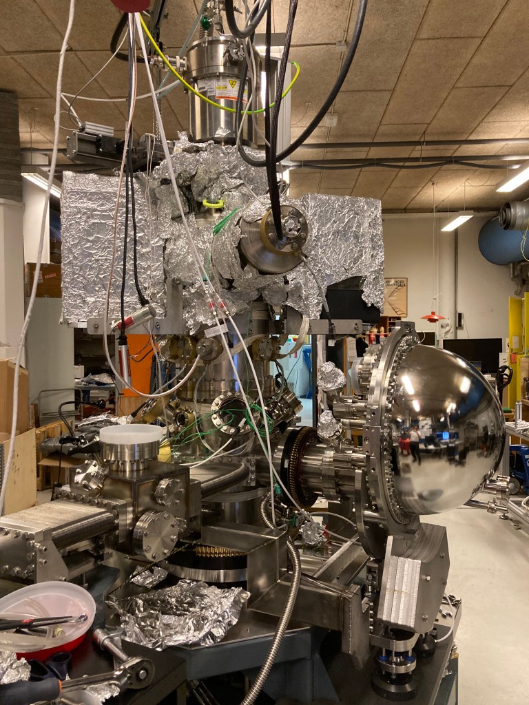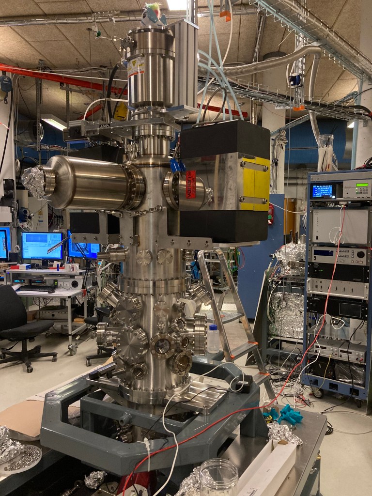The miniaturisation of electronic devices and the emergence of materials with interfaces at the nano- and micro-meter length scales are calling for new approaches to study the electronic properties of these increasingly complex systems. We have installed a new beamline at the ASTRID2 synchrotron light source in Aarhus, Denmark, which provides access to the electronic structure of such materials by employing angle-resolved photoemission spectroscopy with a submicron light spot (nanoARPES). See a rendering of the experiment to the left.